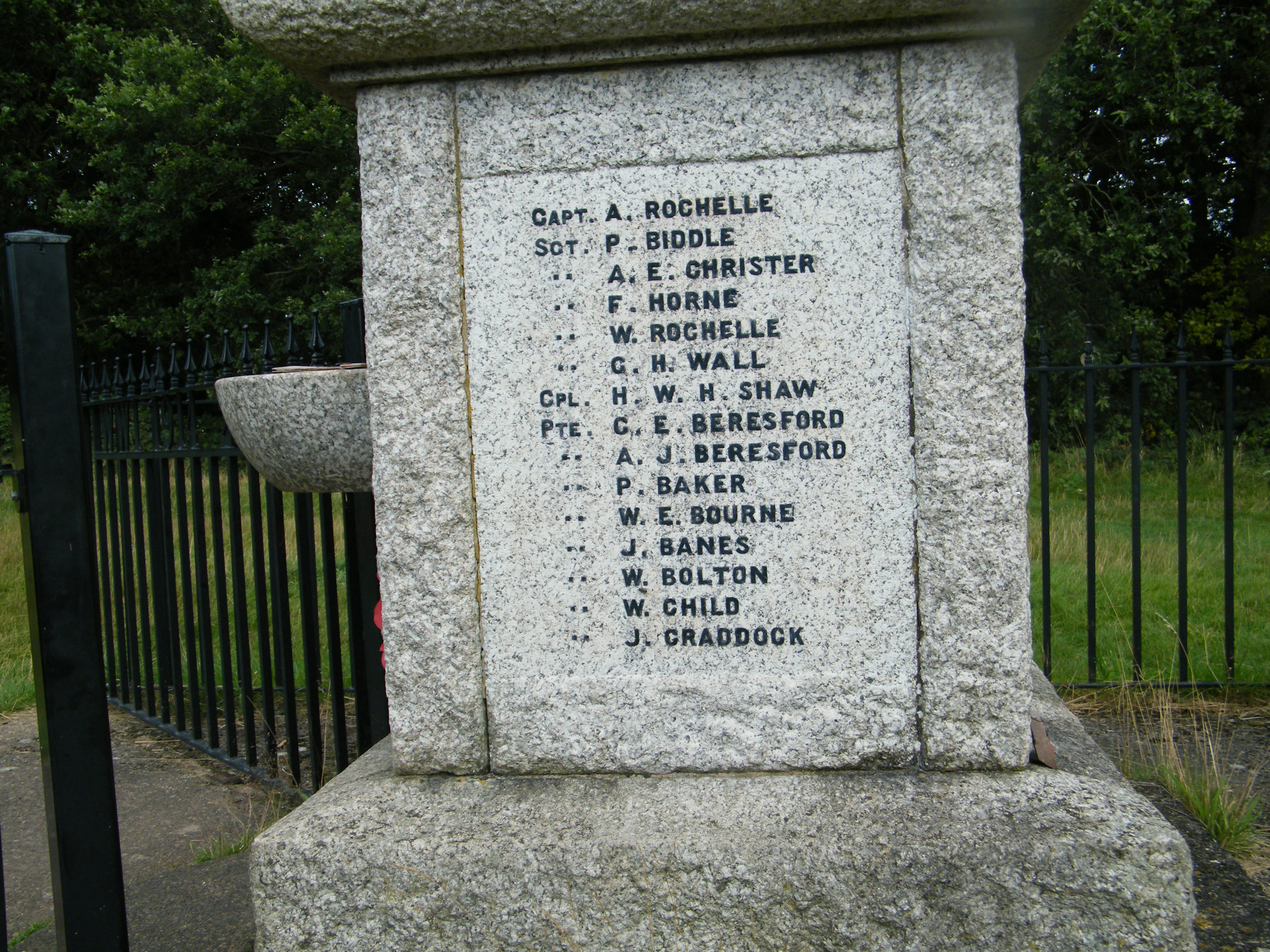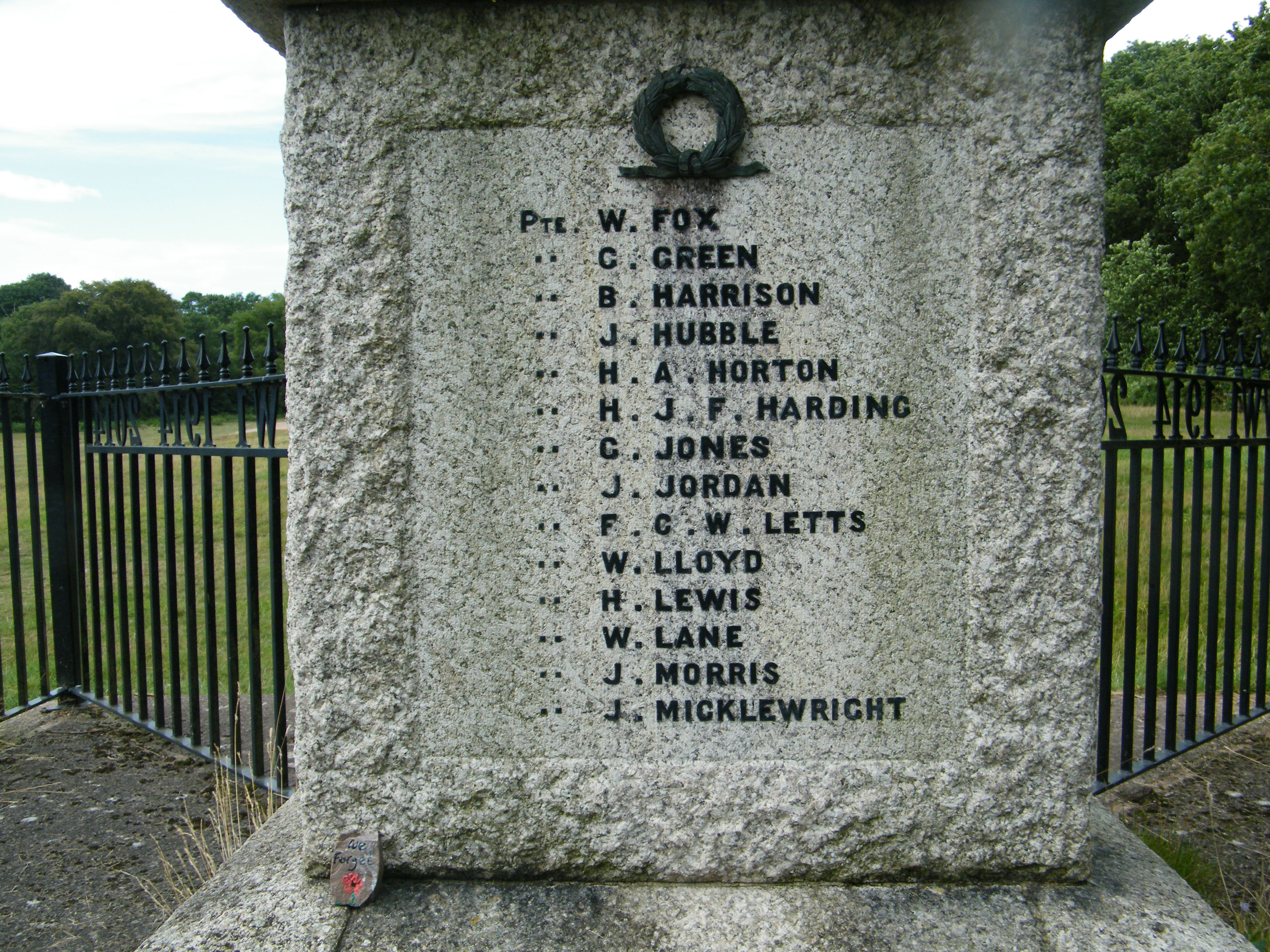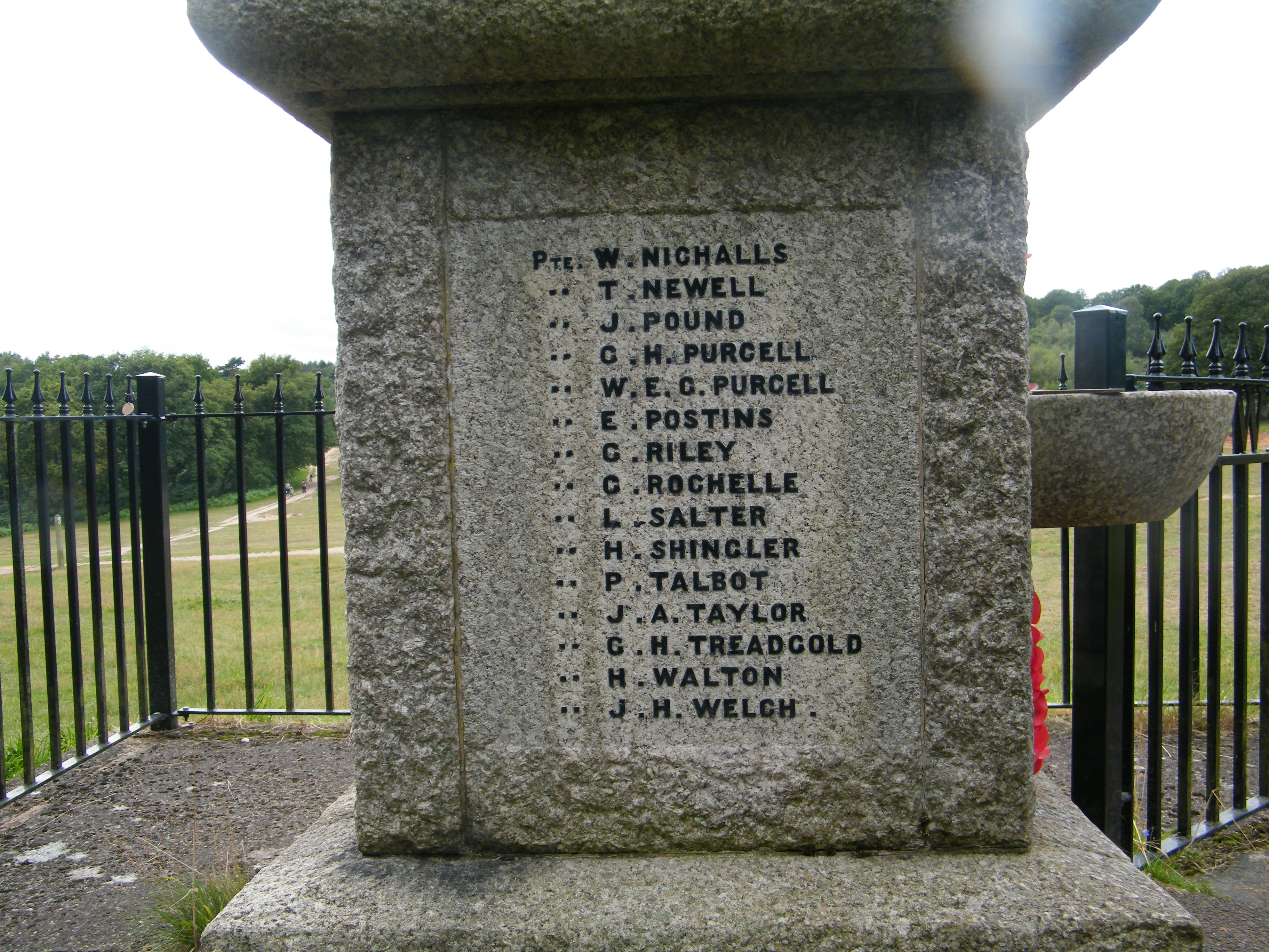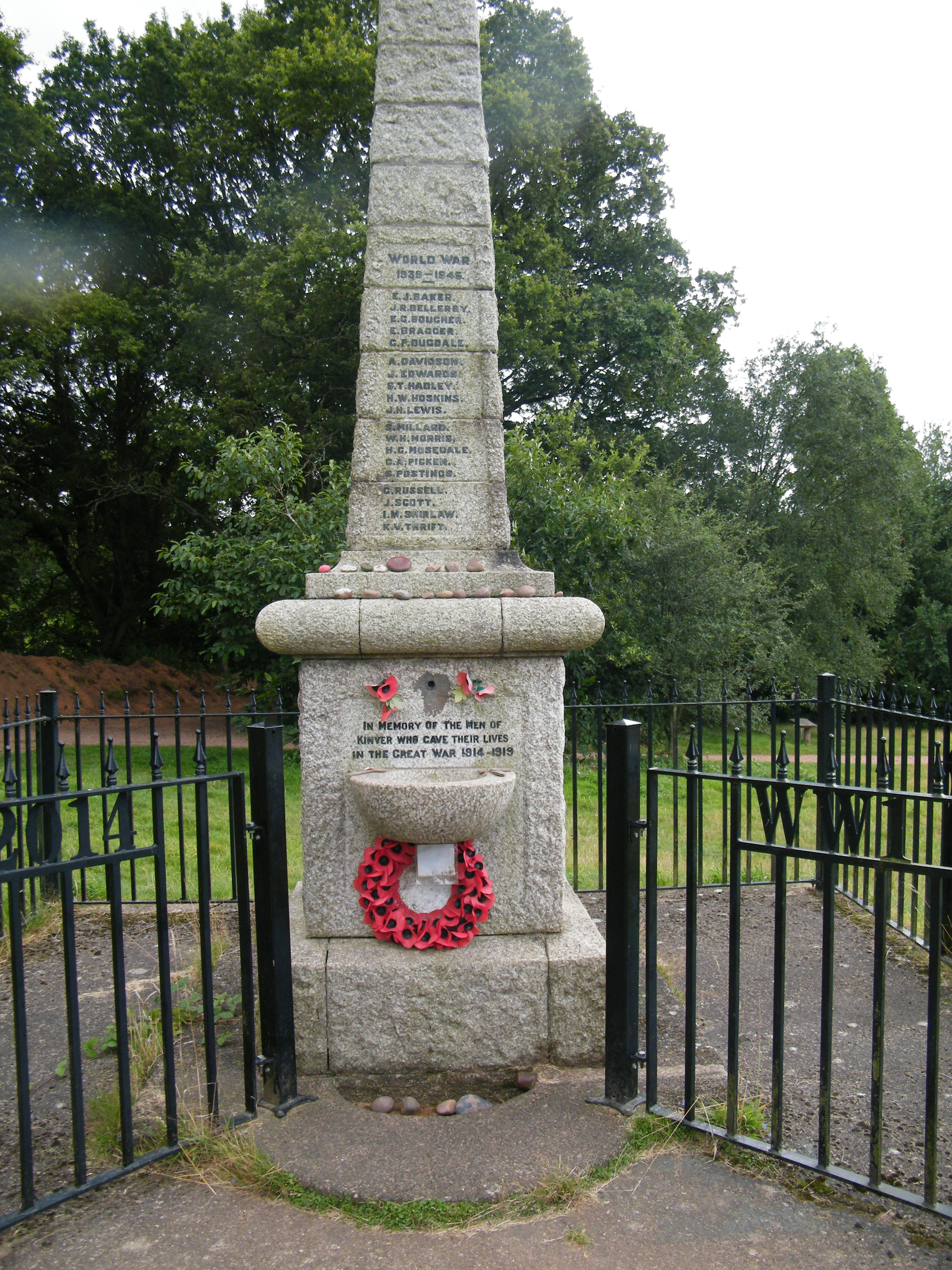 After the Great War ended it was decided to perpetuate the memory of those Kinver men who had died in the war. At that time Kinver residents and visitors regularly spent time on Kinver Edge. As there was not a suitable site for a memorial in the village it was decided to put the memorial on the Edge. Hundreds of people gathered to witness its unveiling in September 1922 by Lieutenant Colonel A H Moody CBE who was the Mayor of Stourbridge. The Memorial is constructed of Cornish granite. It consists of a tapering vertical square obelisk above a square pedestal. On three of the sides of the pedestal are panels which list the men of Kinver who made the ultimate sacrifice in the Great War. The remaining side includes an inscription “IN MEMORY OF THE MEN OF KINVER WHO GAVE THEIR LIVES IN THE GREAT WAR 1914 – 1919" and a drinking fountain for the thirsty. After the Second World War the names of those Kinver men who died in that war were added. Their names are on the front face of the upper part of the Memorial. The Memorial cost £200 which was raised by the villagers including 15 guineas (£15/15s/00d) that major Harcourt Webb insisted on giving. A firing party stood at " Present Arms" with heads bowed whilst colonel Moody released the Union Flag that enshrouded the monument. Three volleys were then fired in salute and the band played the "last Post". On the 13th October 2016 the memorial became a listed building grade II and the ordnance survey reference is OS, SO83836 82976 The railings surrounding the memorial were replaced by Kinver Parish Council in 2014 for The Centenary.